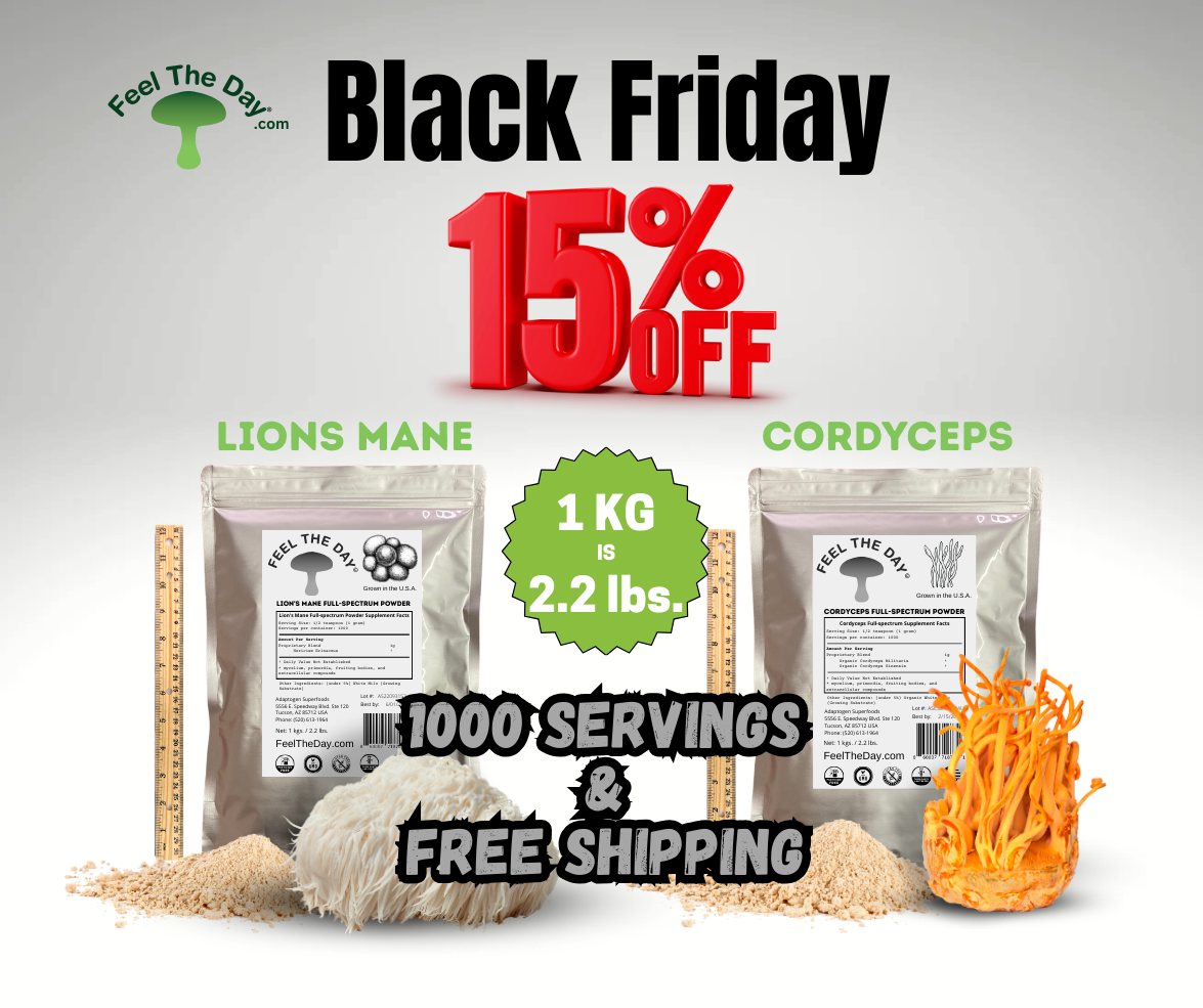 For Black Friday get 15% OFF on 1kg bags of Lions mane and Cordyceps right now! While supplies last!