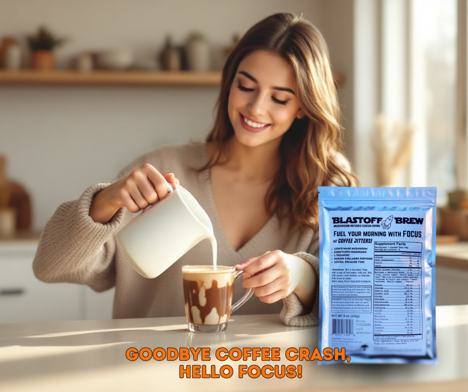 Fuel up with Blastoff Brew -the ultimate mushroom coffee alternative without the jitters or caffeine crash! 🚀