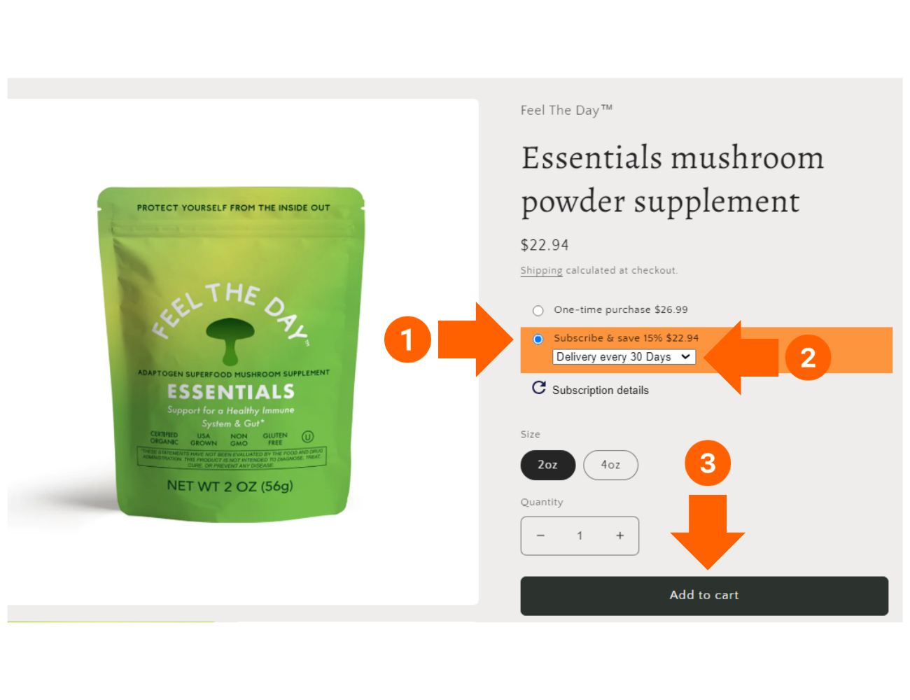 All of the great achievers and bio-hackers like Tony Robbins, Joe Rogan or Tim Ferriss will tell you that will power can only take you so far. The secret to making lasting change whether it is in your body, you mind, or your habits is in ritual. Making something a must every day as part of your routine is the key to getting yourself to adhere to your plan of action. With this in mind, we have created the Subscribe & Save subscription plan. If you opt-in, your Feel The Day© product is automatically shipped to you at the frequency of your choosing to keep you on track for success. Make taking your Feel The Day© a ritual to help strengthen your body and mind from the inside out!
