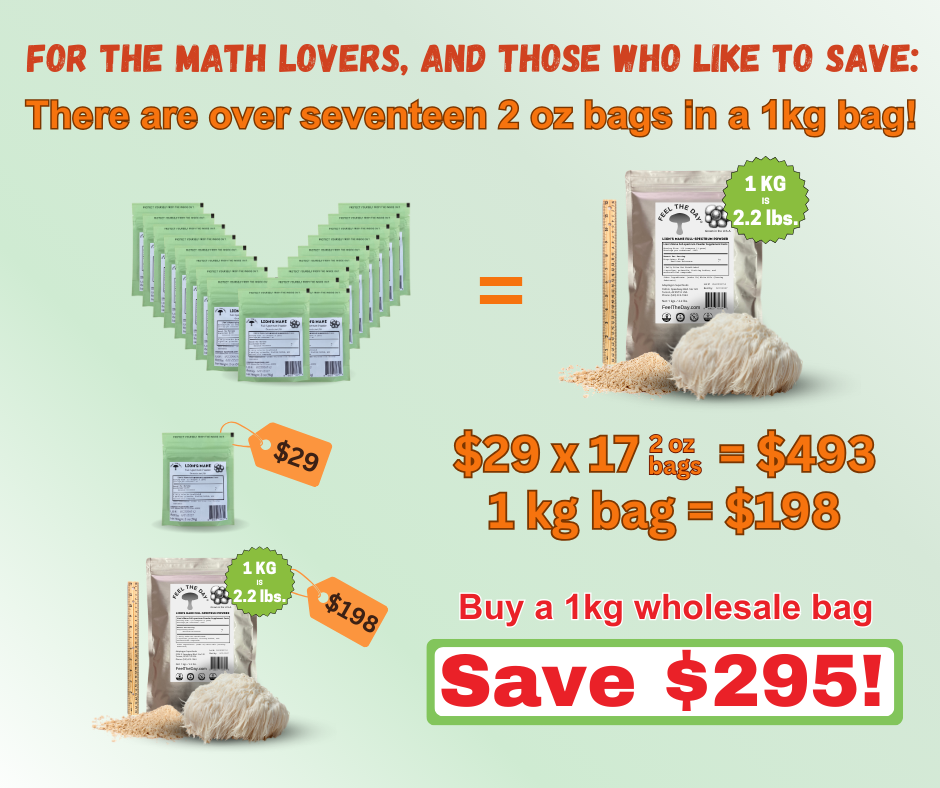 Growing the highest quality mushrooms is not cheap! One way we make our premium mushrooms available to all is to offer bulk discounts! We recommend to try our 2 oz bags and once you are absolutely impressed, step up and get it at wholesale pricing and SAVE BIG!
