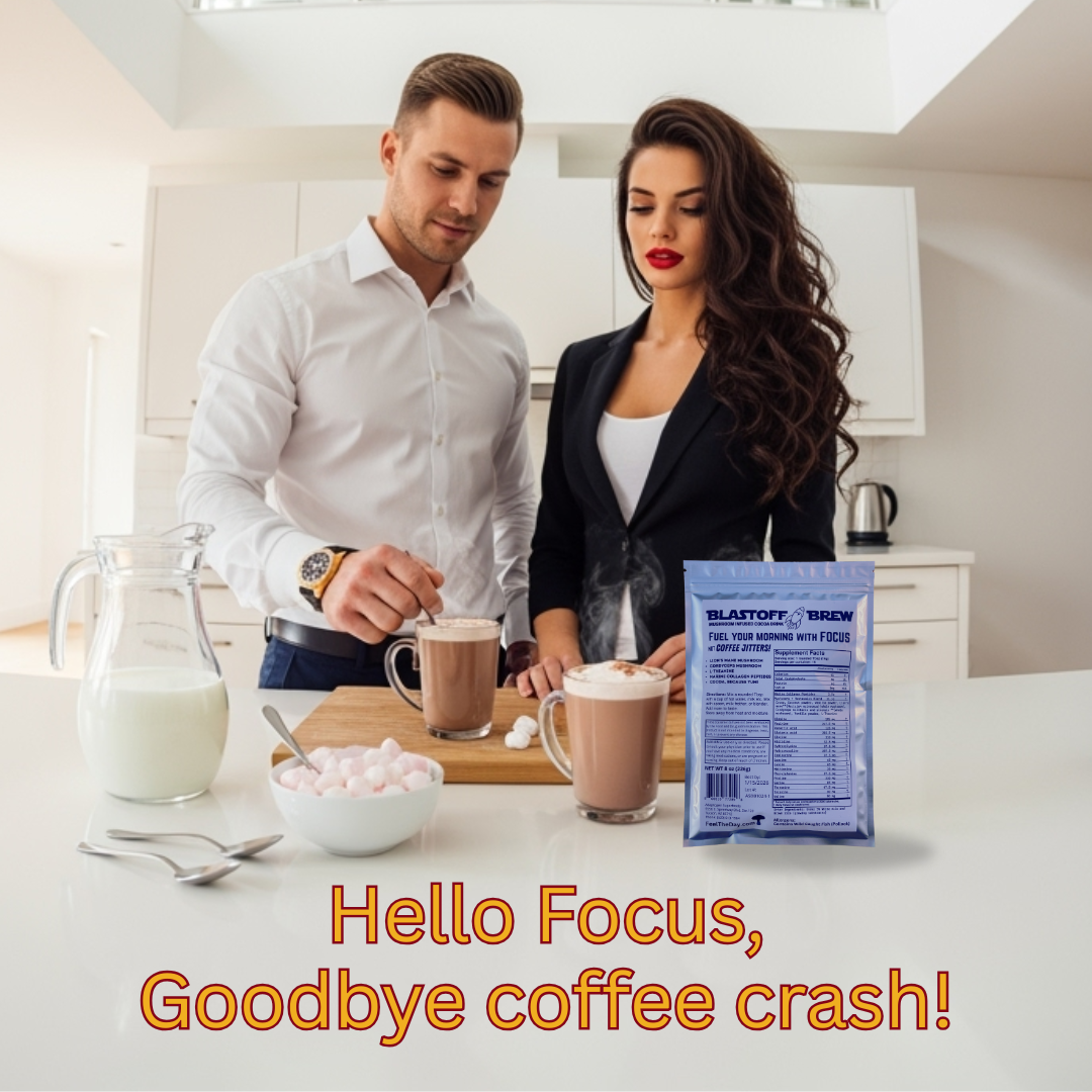 Skip the coffee and drink Blastoff Brew in the morning. It combines the cordyceps, Lion's mane, collagen and the L-Theanine, to kick start your brain in the morning so you remain focused and don't lose energy from the caffeine crash that coffee would have given you. OR, add it to your coffee to minimize the coffee jitters!